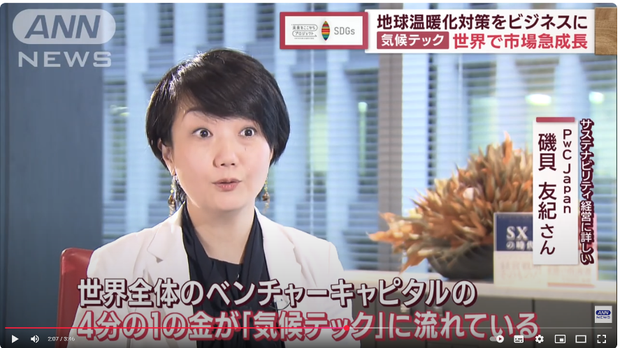 インフォバーン主催のオンライン対談や、テレビ朝日「スーパーJチャンネル」、BSテレ東「地球大調査」、テレビ東京「モーサテ」などに出演。サステナビリティ経営、気候テック、サーキュラーエコノミーをテーマに、社会課題を機会へ変える視点を発信しています。